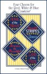 FOUR CHEERS FOR THE RED WHITE & BLUE COASTERS Made-in-the-Hoop patriotic coasters! Finished size: 5 in square. Formats on the CD: ART7, ART8, DST, EMB, EXP, HUS, JEF, PCS, PES, SEW, SHV, VP3 & XXX. Requires a 5 3/4 in square embroidery field.